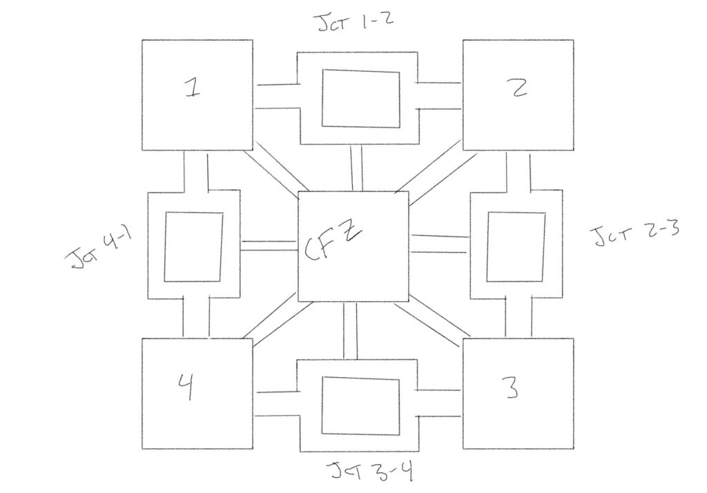 - Central Floating Zone: Only accessible from the top floor of the junctions, and top floor of each tower lies the Central Floating Zone (CFZ). Riddled with great loot, heals, positioning and more, this creates the needs for alternate starting routes of engagement.